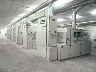 自動供棉機CF-940 1.一條生產(chǎn)線一般供應(yīng)6-10臺,由開棉機至CF-940供棉量由1組連續(xù)供棉控制系統(tǒng)CF-40所管制,依實際產(chǎn)能自動調(diào)節(jié)。使整條供棉壓力維持一定的水平。 2、CF-940配備有12排針板開棉羅拉在低速之下能有相當(dāng)小的棉簇,配合獨立循環(huán)風(fēng)機,制造出均勻的棉層。同時 臺CF-940均裝設(shè)有連續(xù)喂棉控制系統(tǒng),依梳棉實際產(chǎn)能自動調(diào)節(jié)供棉量。 3、CF-940保養(yǎng)及調(diào)整均非常容易,可設(shè)計配合任何廠牌梳棉機,可適用生產(chǎn)75mm以下這纖維長度, 工作寬度可達3500mm。