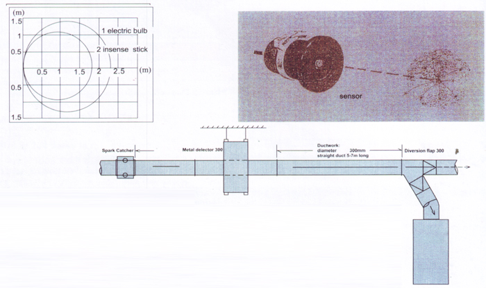 火花偵測(cè)器 SR-300適用管徑:φ200-600mm偵測(cè)速度:100m/s以上感應(yīng)精度:2LU×有效區(qū)1.5M針對(duì)燃燒光譜設(shè)計(jì)有可靠性百分之百金屬偵測(cè)器 ME-350金、銀、銅、鐵、鋁、鉑……金屬物均可偵測(cè)排除。適用管徑:φ200-350mm偵測(cè)速度:50m/s以上感應(yīng)精度:φ6mm鋼球(可調(diào))